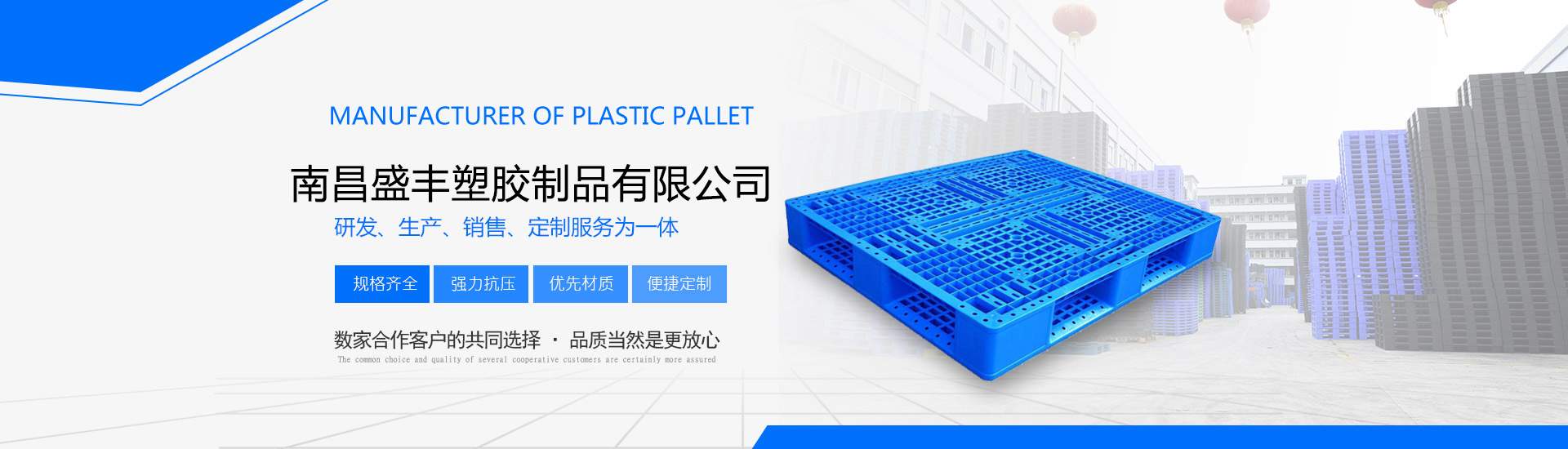 南昌盛豐塑膠制品有限公司擁有先進(jìn)大型注塑、吹塑滾塑成型設(shè)備,技術(shù)力量雄厚,是專業(yè)生產(chǎn)工業(yè)塑料產(chǎn)品的企業(yè)。主營產(chǎn)品:塑料托盤、凹槽印刷托盤、煙標(biāo)煙盒印刷托盤、貨架叉車專用托盤、出口托盤、抗摔吹塑托盤、塑料棧板、塑料吹塑托盤、塑料地臺板、塑料倉庫防潮板、塑料周轉(zhuǎn)箱、EU物流箱、歐標(biāo)箱、折疊箱、工具箱、食品箱、面包箱、面包架、周轉(zhuǎn)筐、籮、化工桶、PE水塔、塑料PE水箱、垃圾桶、塑料加藥箱、塑料一噸方桶、塑料IBC噸桶、打不爛餐具消毒箱、等制品。我們秉承誠信服務(wù)的意念,在產(chǎn)品的售后服務(wù)上,我們有著專業(yè)的業(yè)務(wù)人員定時跟進(jìn),確保客戶滿意度!